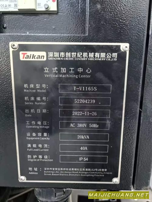 准新台群1165,发那科系统,主轴直连12000转,带24把机械手刀库,精度新机标准! 信息编号:S600813 |