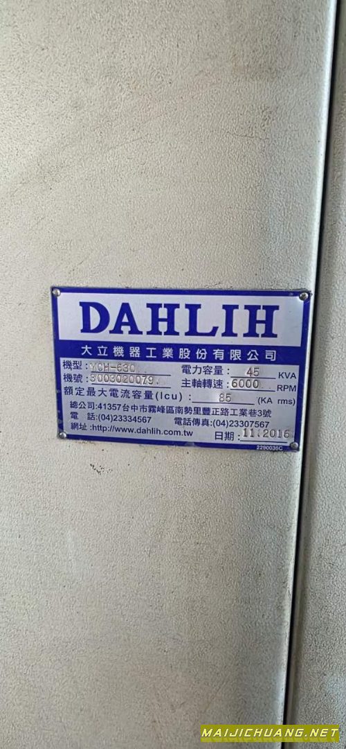| 台湾大立630卧加回转交换双工位,BT50齿轮头,三轴光. |